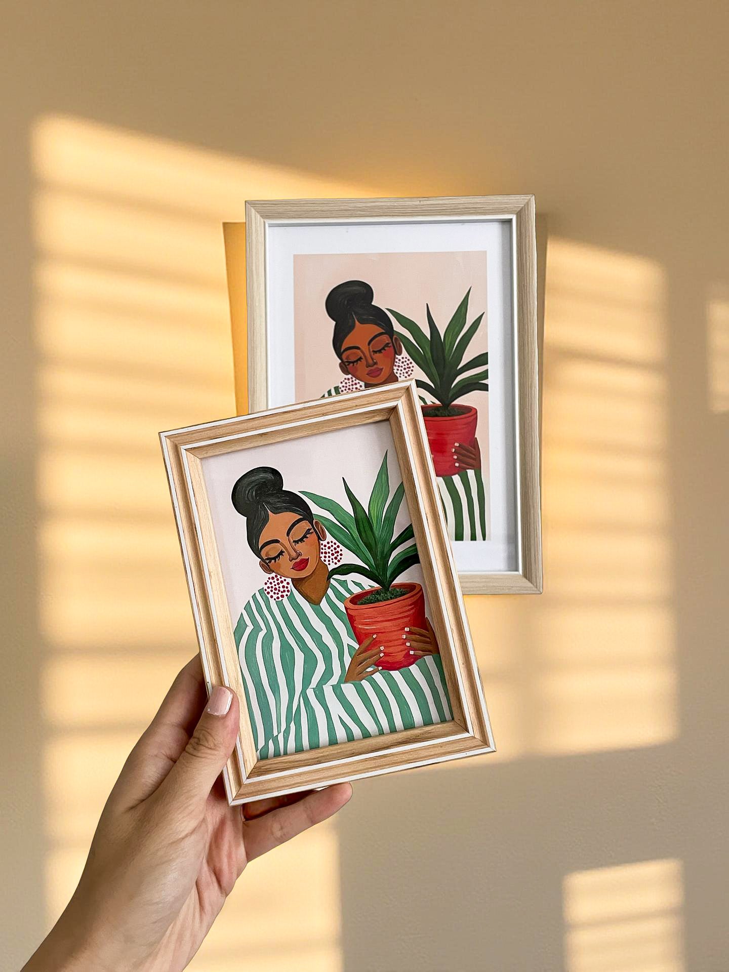 Este cuadro decorativo representa a una mujer amante de las plantas, destacando la conexión entre la naturaleza y el bienestar emocional. Su diseño visualmente atractivo fomenta la tranquilidad en los espacios interiores, contribuyendo a un ambiente más armonioso y relajante. Ideal para entornos que valoran la decoración natural y el estilo de vida sostenible.