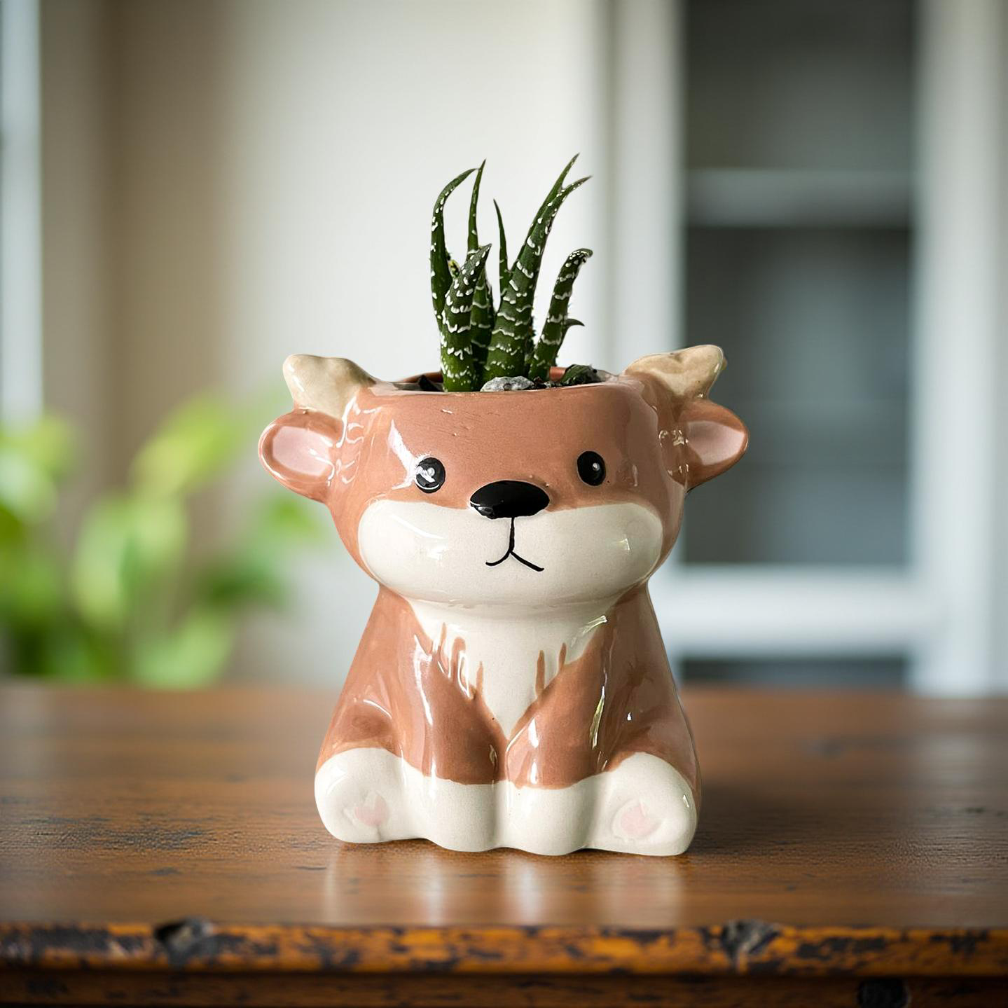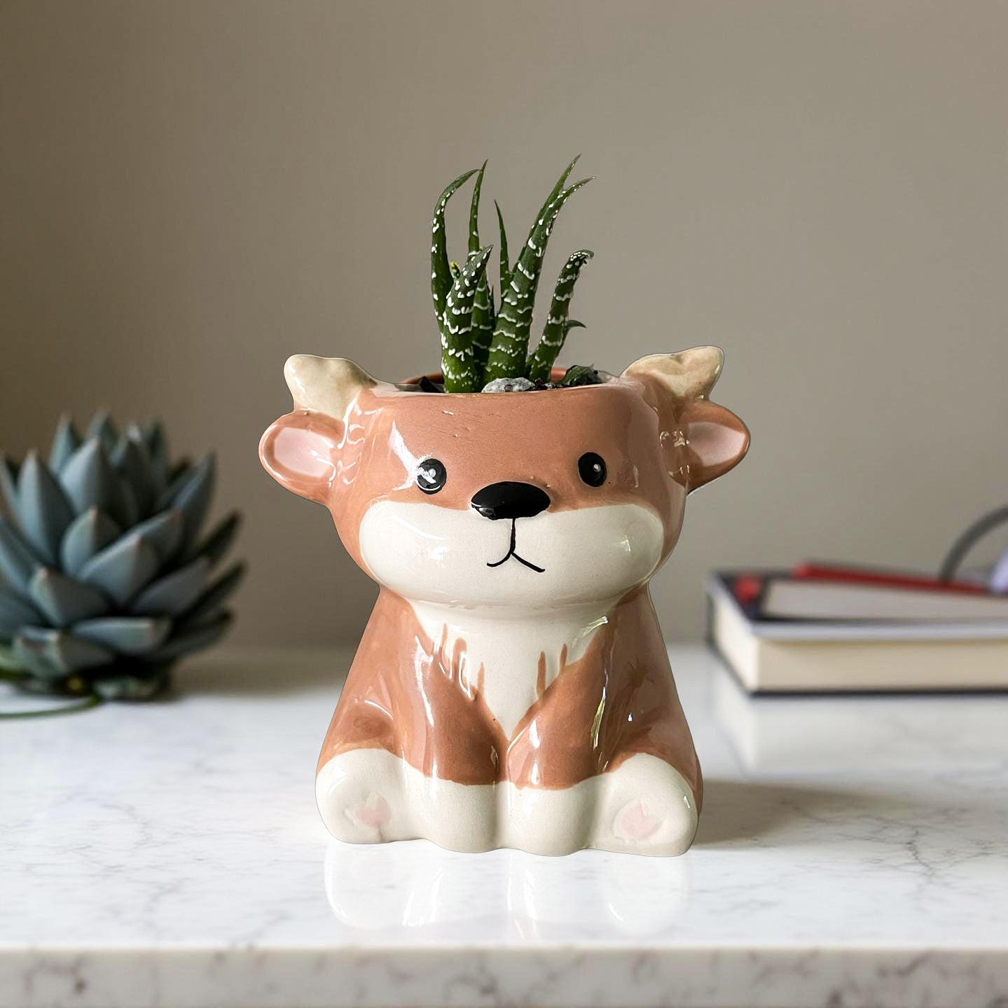Este modelo de macetero de cerámica con forma de reno, tiene 9 cm de alto y 9 cm de ancho. Pertenece a la colección de animales de suculentas y es ideal para habitaciones o muebles que tengan luz ✨